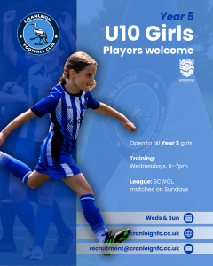 Join Cranleigh FC U8, U9 or U10 Girls Teams