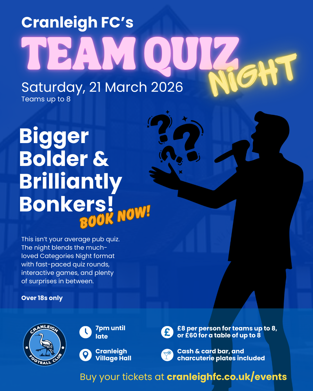 Dust off your thinking caps and rally your brightest mates — Cranleigh FC’s legendary quiz night is making a triumphant return this spring, and it promises to be a cracking evening of laughs, competition, and classic quiz chaos.